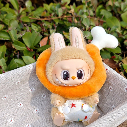 12-15cm Labubu clothes-Padded Bloomers + Roasted Drumstick Helmet