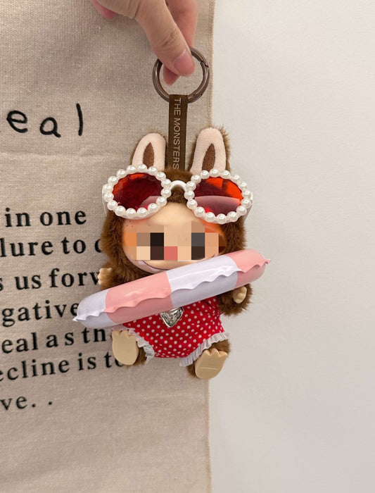 17cm Labubu clothes-Red Polka Dot Swimsuit + Inflatable Ring + Retro Shades