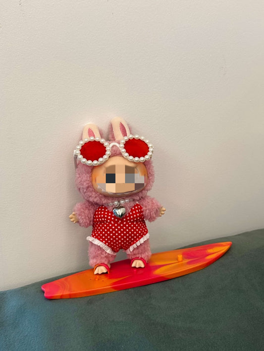 17cm Labubu clothes-Red Swimsuit + Mini Surfboard + Seashell Necklace + Retro Shades