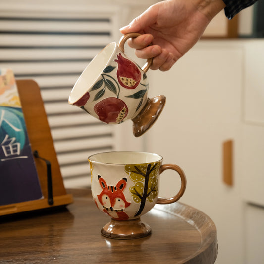 Hand-Painted Ceramic | Floral Creative Stem Cup | High-Temperature Mineral Glaze