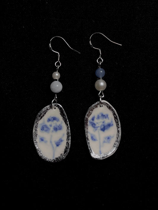 Chalice Fragment Earrings - Paired Blue & White Curves