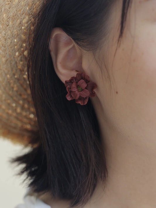 Camellia | Wine Red Handmade Polymer Clay Earrings