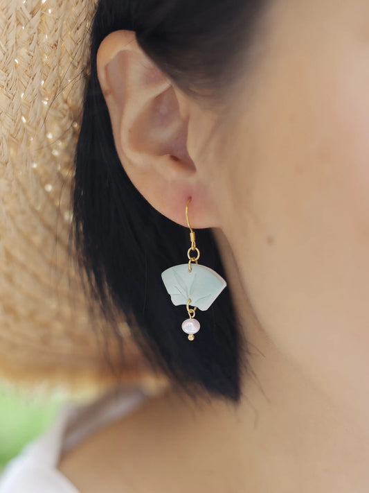 Chinese Style Folding Fan Earrings-Handmade Soft Polymer Clay-Pearl Drop