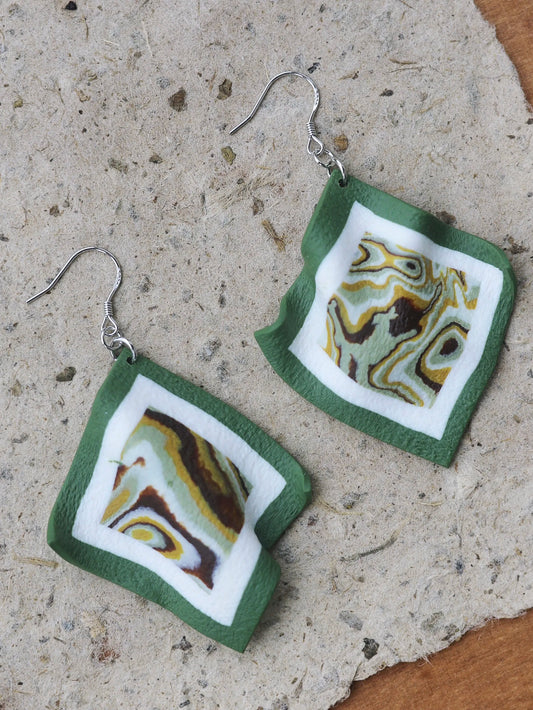 Handmade Olive Green Clay Earrings - Unique Artisan Jewelry Gift