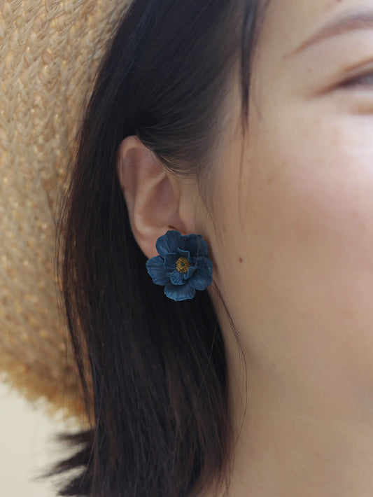 Camellia | Deep Sea Blue Handmade Polymer Clay Earrings