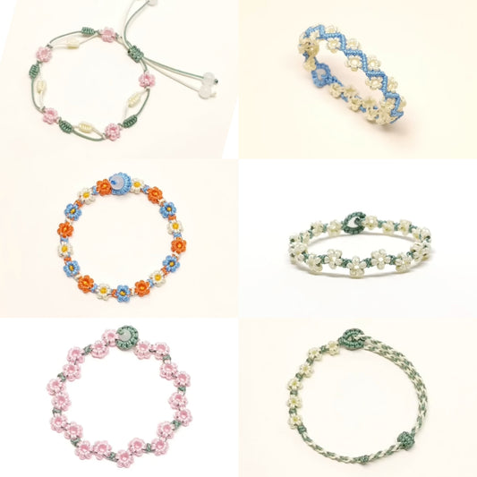Handwoven Floral Chain Bracelet - Pink Blossoms on Green Vine