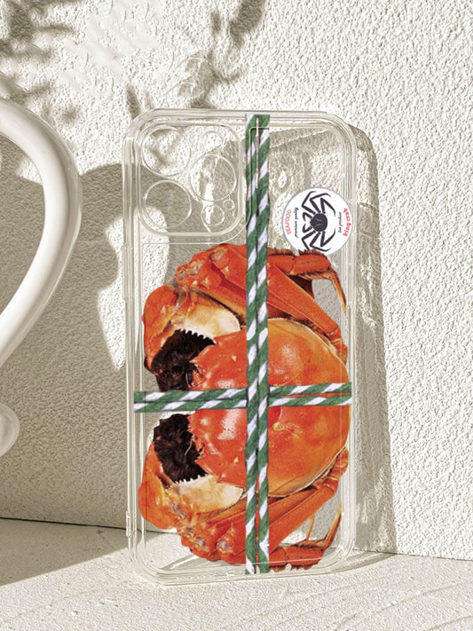 Transparent Crab Design Phone Case for iPhone 16/15/14/13/12/11 Pro/Max - Realistic Seafood Art Protective Cover
