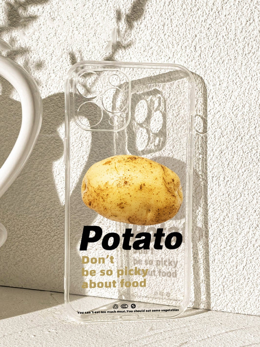 Transparent Potato Print Phone Case for iPhone 16 to 11 Series - Natural Food Theme Slim Cover