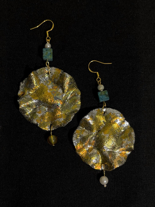 Lotus Leaf Earrings - Gilded Canvas on Hand-Painted Ceramic