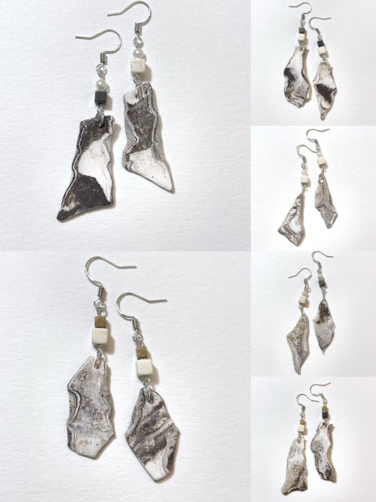 Eroded Shard Ceramic Earrings - Abstract Black White Fragment