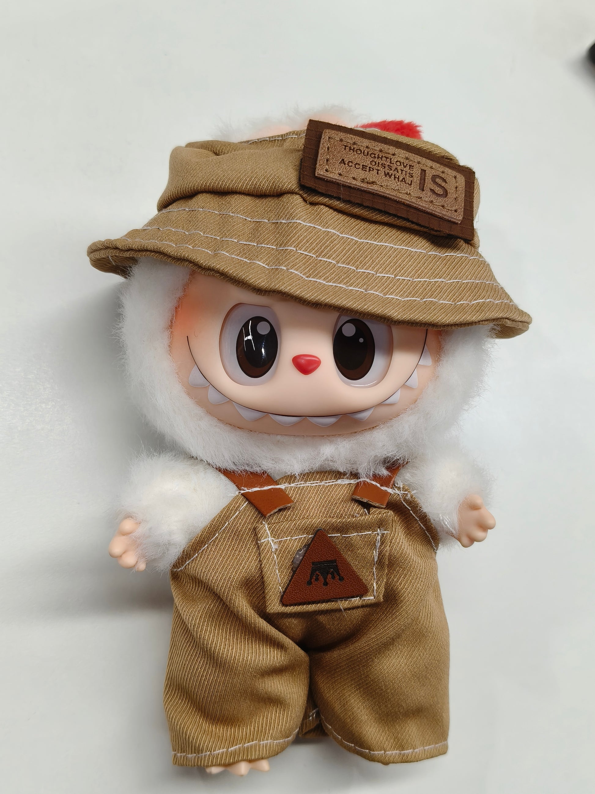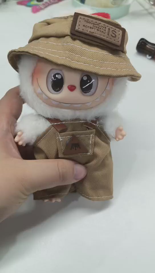 17 cm Labubu clothes-Little Traveler (Brown Bucket Hat + Overalls)