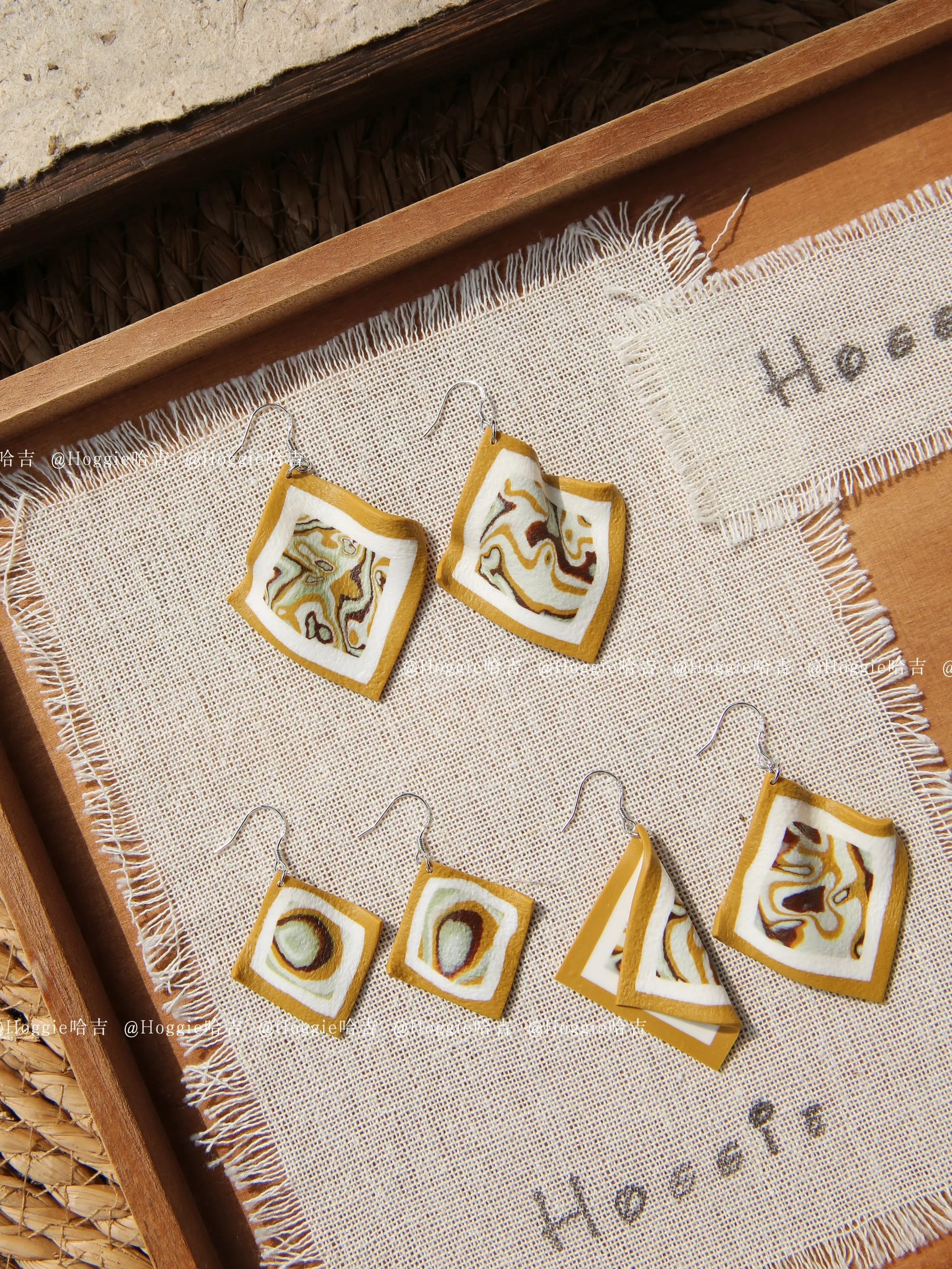 This collection captures the soft elegance of silk scarves and the bold, painterly strokes of oil paintings, all embodied in soft clay. Each piece is more than a miniature art installation for your ears—it's a poetic expression of your unique style.
